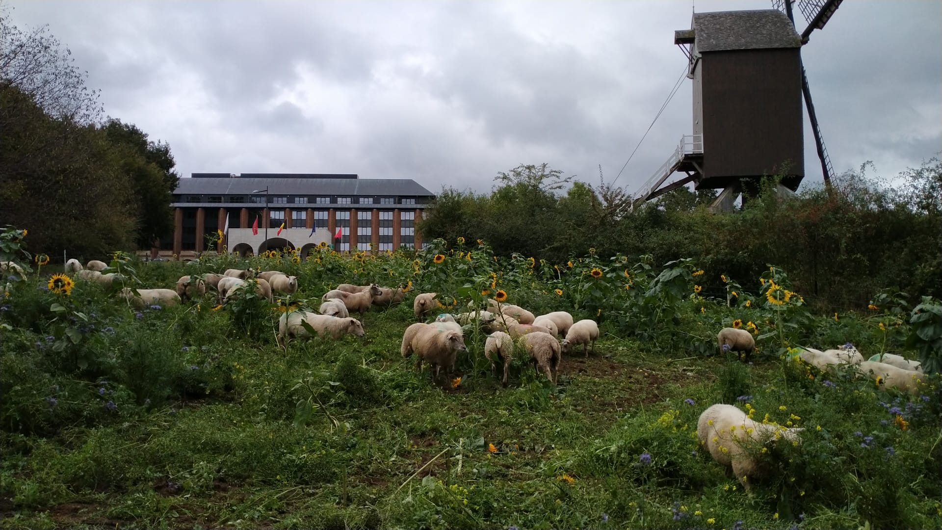 Pour tondre l’engrais vert, les moutons sont une meilleure solution qu’une solution mécanique comme le broyage par un tracteur : les moutons apportent un micro-organisme via leurs déjections et n’abîment pas la terre.