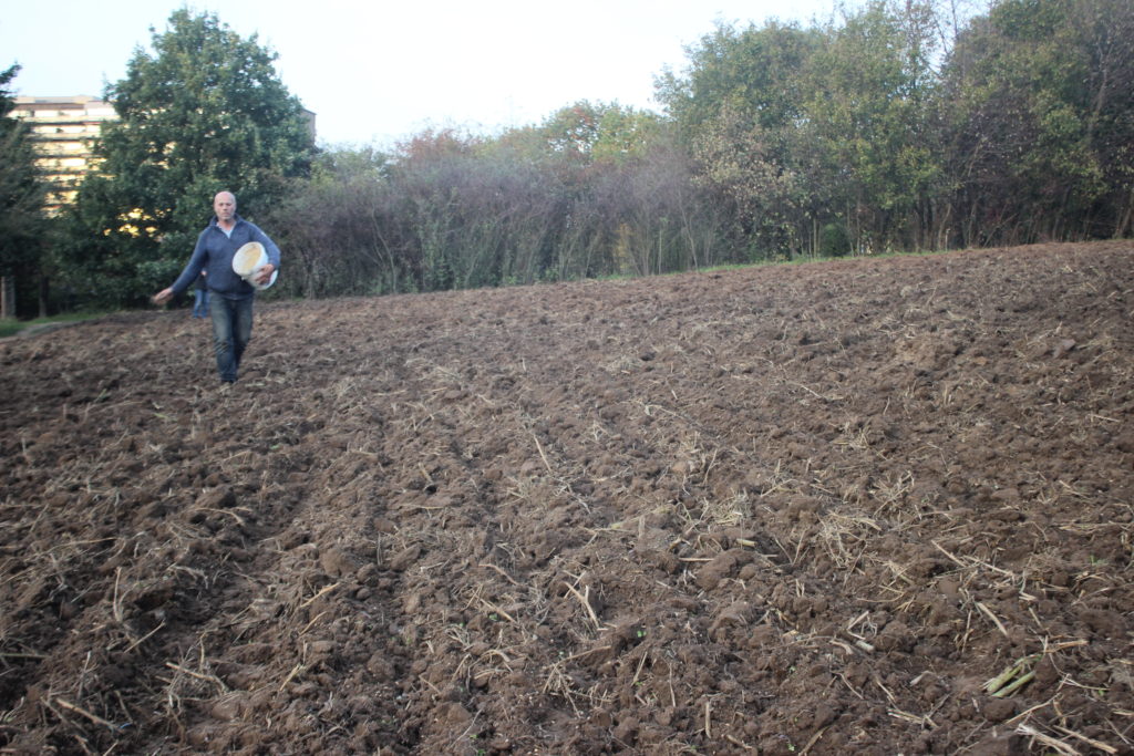 Semaille à la main, avec passage de la herse pour enterrer sommairement les graines !